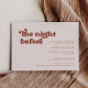 La veille... Assurez-vous que tout est parfait pour le grand jour; recevez des invitations modernes pour votre dîner de répétition mariage. Un thème rétro chic : adoptez ce design typographique légèrement vintage et élégant pour votre papeterie mariage, avec un thème orange brûlé, terre cuite, sucre brun et rose pêche. Texte, couleurs et arrière - plans entièrement personnalisables.