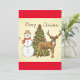 Une scène de noël vintage avec un arbre un bonhomme de neige et un renne. Cette conception semble vraiment efficace sur ces invitations