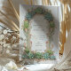 Ce faire-part de mariage sophistiqué présente un superbe design Art Nouveau avec des motifs floraux et succulents complexes. L'avant de la carte présente une arche magnifiquement artisanale ornée de succulents verts luxuriants et de délicats accents roses, encadrant élégamment les détails mariages. L'envers poursuit le thème botanique, avec des arrangements succulents assortis qui ajoutent une touche de beauté inspirée de la nature. L'arrière - plan pastel moelleux vient compléter l'oeuvre d'art détaillée, rendant cette invitation parfaite pour un jardin ou un mariage sur le thème de la nature. Idéal pour les couples à la recherche d'un mélange de charme vintage et d'élégance moderne, cette invitation est une pièce intemporelle de papeterie mariage.