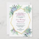 Cette invitation élégante et à la mode de retraite est parfaite pour un événement avec un thème succulent ou floral. Elle comporte un cadre irrégulier avec une texture de parties scintillantes et des illustrations des succulents aux nuances molles du vert pour un effet chic. La conception est élégante et parfait dites au revoir à un chers ami et collègue.
