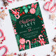 Cette invitation de Noël offre des sucres de canne de menthe poivrée aquarelle, des lollipops et des sucres de canne de menthe poivrée, de nombreuses verdure hivernale comme des baies saintes et rouges, des aiguilles de pin, des arcs rouges, des fleurs rouges et plus encore sur un arrière - plan vert foncé. Vous pouvez customiser tout le texte de votre événement. Au verso de l'invitation se trouve un motif rayé de bonbons rouge et vert. Voir l'ensemble de la collection correspondante.