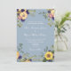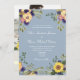 Elégant, campagnard, rustique, botanique, bleu poussiéreux tout-en-un faire-part de mariage avec code QR pour RSVP, site web, photo du couple, fleurs d'aquarelle boho, tournesols et script moderne.