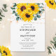 Ces invitations de mariage botaniques uniques présentent un design floral aquarelle avec des tournesols, des feuilles d'eucalyptus et des lampes à cordes scintillantes sur un arrière - plan blanc. Ils sont parfaits pour les mariages de automne mais aussi pour les célébrations mariages qui ont lieu à tout moment de l'année. Le feuillage couleur sauge eucalyptus ajoute un style moderne et élégant aux tournesols rustiques. Ces invitations peuvent également être utilisées pour les mariages de grange rustique ou pour les mariages de jardin d'été. Personnalisez ces invitations de mariage avec vos noms et votre texte. Des produits de toilette mariages correspondants sont également disponibles.