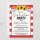Une mignonne invitation à la fête de remise de diplômes avec des tournesols et des rayures rouges.