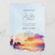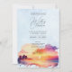 Faire-part de mariage moderne avec belle plage au coucher du soleil.