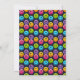Une invitation d'anniversaire vibrante et ludique présentant un design psychédélique inspiré de l'époque rétro. Le fond sombre est décoré de formes colorées tourbillonnantes, de lignes abstraites et de gouttes de couleur vibrantes rappelant les années 1970. La bordure est un motif amusant de visages souriants multicolores, avec des étoiles et des bulles dispersées dans tout le design. Le texte est dans un mélange de polices grasses et ludiques, avec des détails clés mis en évidence en bleu clair et rose.