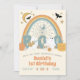 Invitation d'anniversaire d'Halloween rétro super avec arc-en-ciel, fantômes éffrayants, citrouilles, champignons et fleurs. Parfait pour une soirée hippie des années 70 !