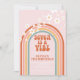 Retro inspiré Seven est une invitation vibe 7ème anniversaire avec hippie style arc-en-ciel, marguerites et polices et couleurs boho.