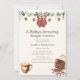 Célébrez un moment spécial "bébé est en route" avec cette charmante invitation à une baby shower, parfaite pour une célébration de la Saint-Valentin. Le design présente une délicate guirlande d'eucalyptus avec de mignons vêtements de bébé en forme de cœur suspendus, accompagnés d'une tasse de café confortable et d'un sac de grains de café. Les tons chauds et terreux et les illustrations à l'aquarelle créent une atmosphère rustique et invitante. Cette invitation est idéale pour honorer la future maman avec un thème qui mélange l'excitation d'une nouvelle arrivée avec la chaleur d'une pause-café.