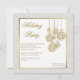 Elégante invitation de vacances en entreprise faite en forme carré avec des graphiques d'un arrière - plan tourbillon blanc d'hiver. Une zone de texte blanc encadrée d'or, au centre, présente de jolis ornements de billes de couleur or accrochés sur la droite. Le texte en or brun, en haut à gauche, dit : Fête des Fêtes. Personnalisez le texte doré brun pour la fête de votre entreprise.