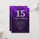 Invitation surprise 15e anniversaire. Design élégant violet avec faux argent parties scintillant. Anniversaire adulte. Dispose de diamants, lumières de livres et police de script. Hommes ou femmes anniversaire invitation. Parfait pour une fête d'anniversaire élégante. Message-moi si vous avez besoin d'une personnalisation plus poussée.