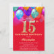 Surprise 15e anniversaire Ballons couleur rouge et or et Invitation Confetti. Pour plus de personnalisation, cliquez sur le bouton "Customiser" et utilisez notre outil de conception pour modifier ce modèle.