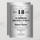 Surprise 18th Birthday Invitation Design rétro en fausse feuille d'argent et noir. Bravo à 18 ans ! Peut également être personnalisé dans n'importe quelle année.
