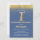 Surprise 1er anniversaire Parties scintillant bleue et or Confetti Invitation anniversaire. Pour plus de personnalisation, cliquez sur le bouton "Customiser" et utilisez notre outil de conception pour modifier ce modèle.