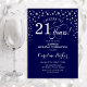 Invitation à la fête du 21e anniversaire Surprise. Design élégant en bleu marine et faux parties scintillant argent. Fonctionne la police de script et les confettis de diamants. Salutations à 21 ans ! Message-moi si vous avez besoin d'une personnalisation plus poussée.
