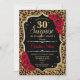 Invitation surprise 30e anniversaire. Dessin noir féminin, rouge avec parties scintillant en or. Caractéristiques animal léopard cheetah motif, roses rouges, police de caractères et confetti. Parfait pour une soirée d'anniversaire élégante. Peut être personnalisé pour montrer n'importe quel âge. Message-moi si vous avez besoin d'une personnalisation plus poussée.