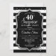 Invitation surprise 40e anniversaire. Design classique avec rayures noir et blanc, police de script et argent de parties scintillant. Parfait pour une soirée d'anniversaire élégante. Peut être personnalisé pour montrer n'importe quel âge. Message-moi si vous avez besoin d'une personnalisation plus poussée.