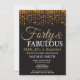Surprise 40e invitation anniversaire. Quarante et fabuleux. Noir et Or. Parties scintillant or. Fête d'anniversaire pour adulte. Pour hommes ou femmes. Pour plus de personnalisation, cliquez sur le bouton "Customiser" et utilisez notre outil de conception pour modifier ce modèle.