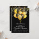 Ballons noirs et or et confetti invitation de la fête du 50e anniversaire. Design en noir et or audacieux avec une police en écriture blanche moderne. Personnaliser pour n'importe quel âge. 30, 40, 60, 70, 80, et plus.