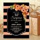 Faux parties scintillant en noir et corail rayé surprise florale 50e anniversaire invitation fête.