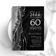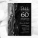 Invitation de célébration du 60e anniversaire en agate noir et argent. Design moderne élégant avec fond de géode de marbre d'agate aquarelle, faux paillettes argent et police de caractères script. Carte d'invitation élégante parfaite pour une fête d'anniversaire de mariage chic. Invitations Zazzle imprimées ou modèle numérique téléchargeable instantanément.