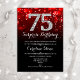 Surprise 75e anniversaire Invitation. Design élégant noir rouge avec fausse parties scintillant argent. Anniversaire adulte. Dispose de diamants, lumières de livres et police de script. Hommes ou femmes anniversaire invitation. Parfait pour une fête d'anniversaire élégante. Message-moi si vous avez besoin d'une personnalisation plus poussée.