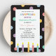 Surprenez cette dame spéciale avec une fête du 85e anniversaire et une invitation colorée aussi ! Cet invitation de fête de 85ème anniversaire surprenant présente des bougies le long du fond dans les tons préférés de tout le monde, bleu, lavande ou violet, or, rose et vert avec coordination pois sur noir tout autour. Les détails de votre fête apparaissent sur un arrière - plan blanc mais continuent le thème coloré. C'est une invitation amusante à une célébration surprise de 85ème anniversaire. Copyright henishouseo
