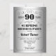 Invitation surprise 90e anniversaire. Design rétro en faux feuille argent et noir. Salut à 90 ans ! Peut également être personnalisé dans n'importe quelle année.