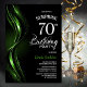 Cette invitation de 70e anniversaire moderne en noir et vert donne le ton parfait pour une fête surprise. Personnalisez facilement votre invitation avec le nom de l'invité d'honneur, les détails de la fête et les informations sur le lieu en quelques clics seulement. Vous serez en mesure de créer une nuit remplie d'amour, de rire et de souvenirs chéris que vos proches chériront à jamais. Vous pouvez choisir parmi une variété de types de papier et de styles d'angle pour créer une invitation unique qui convient à votre goût. De plus, vous avez également la possibilité de télécharger l'invitation si vous préférez une version numérique.