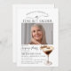 La photo du célébrant de l'anniversaire occupe le devant de la scène dans cette invitation à la fête d'anniversaire à martini tendance. Le design élégant et chic comprend un expresso martini. Un joli arc ajoute une touche féminine. Tout le texte est modifiable.