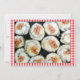 Sushi avec garnitures à motif artistique rouge et blanc.