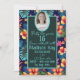 Invitation Sweet 16 Collage tropical Hibiscus Bleu profond