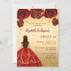 Une invitation moderne, élégante et glamour pour une fête Sweet 16, 16e anniversaire. Un arrière - plan en faux or avec une parties scintillant en faux or, une fille portant une robe rouge et or et des roses rouges, des fleurs. Le nom est écrit avec un script de style moderne écrit à la main. Personnalisez et ajoutez les détails de votre fête.