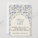 Jovely Sweet Little Pea Girl invitation de premier anniversaire avec imprimé fleur de pois doux avec papillons dans les tons bleu doux sur crème arrière - plan