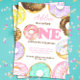 Invitation Sweet One Donuts 1er anniversaire fille aquarelle