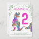 Invitation T. Rex 2e fête d'anniversaire rose