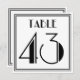 Cadre inspiré de "Gatsby" Art Déco entoure élégamment cette carte de numéro de table, parfaite pour les soirées et les réceptions de mariage nécessitant des numéros de table. Créez l'ambiance avec style. Achetez autant de cartes que vous le souhaitez, elles sont pré-conçues pour vous, vous évitant d'avoir à essayer de les personnaliser vous-même.