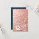 Modèles de cartes pliées de placement de mariage / numéro de table / escorte - Écriture élégante et couple vintage avec pots de Mason et guirlandes lumineuses sur fond de texture de feuille d'or rose.