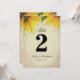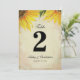 Une belle décoration de réception de mariage au tournesol. Numéros de table avec un joli motif floral jaune sur le devant et le dos parfait pour les mariages dans une grange, les mariages dans un jardin et les thèmes de mariage au tournesol. Chaque numéro de table doit être personnalisé et ajouté individuellement à votre panier. Les cartes de numéros de table sont recto-verso. Assurez-vous de changer le texte des deux côtés. Conçu par Victoria chez VG Invites. Pour voir plus de décorations de réception de mariage au tournesol de Victoria, visitez www.zazzle.com/vginvites.