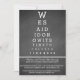 Nous avons dit "Je le veux" maintenant il est temps de faire la fête est écrit de manière unique, amusante et originale sur une invitation de fête après le mariage, réception uniquement. Les invités adoreront l'originalité de notre version du tableau de Snellen transformé en invitation de fête après le mariage qui est facilement personnalisable en utilisant le modèle fourni. Si vous avez des questions ou des demandes spéciales, envoyez simplement un e-mail à zazzleinvites@gmail.com.