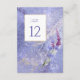 Cette collection de mariage élégante utilise une palette de couleurs saisissante, y compris la perwinkle, la prune et le blues doux pour créer des articles de papeterie assortis et des fournitures de fête pour votre journée spéciale. Les flores d'aquarelle et les touches de peinture scintillantes attirent les arrière - plans. Écriture manuscrite jumelée à une police serif classique apporte une touche moderne. La carte "Numéro de table" mariage présentée ici fournit une texture arrière - plan pétillante et un modèle pour ajouter facilement votre propre numéro, vos initiales et votre date de mariage. Recherchez ID954 pour voir d'autres pièces et choix de couleurs pour cet ensemble.