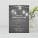 Dîner de répétition noir blanc Invitation avec arrière - plan de tableau noir, lumières à cordes, jarre Mason et texte à la craie manuscrite/écriture manuscrite. Utilisez cette option de modèle personnalisée pour modifier le texte | Utilisez l'option personnaliser pour modifier le style de texte et la couleur si nécessaire.