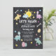 Tableau noir coloré Dinosaur 1er anniversaire Invitation