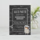 Vous et votre petit êtes sûrs d'avoir une explosion à la fête d'anniversaire de maths de cette année ! L'Adorable et mignonne invitation de fête d'anniversaire de maths a un arrière - plan de formules et d'équations blanches sur un tableau comme un arrière - plan noir. Au premier plan, il y a un petit enfant avec un costume de calculatrice. Illustré et dessiné par Patricia Alvarez.