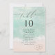 Beau turquoise abstraite aquarelle scintillante vague d'océan et les coeurs dans l'arrière - plan de plage de sable, surmonté d'un script élégant et d'élégante police serif, moderne et simple. Cartes de table pour le mariage nautique sur la plage, mariage tropical de destination, mariage sur le thème de l'océan côtier en été.