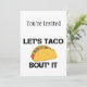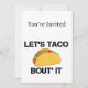 Une façon amusante de dire, parlons-en. Avec un yummy taco ! Donc, bon, TACO A LA PLACE. Ça a l'air plus satisfaisant, n'est-ce pas ?