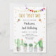 Cette invitation amusante présente des succulents aquarelle avec des accents de parties scintillant dorée et des drapeaux de fiesta couleur.