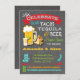 C'est une Fiesta avec cette super cool Tacos, Tequila et des invitations à la fête de la douche Couples Bière. Idéal pour une fête d'engagement. Un verre de tequila, taco et une tasse de bière froide avec bannière et typographie amusante contre un arrière - plan de tableau noir. Illustration tirée à la main par McBooboo.