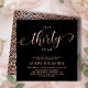 Élégant Chic Talk 30 To Me Script Black and Rose Gold 30th Birthday Invitation. Ce modèle d'invitation à la fête d'anniversaire moderne pour femme présente un texte élégant "Talk Thirty To Me" dans énorme feuille d'or faux rose script tourbillonnant calligraphie manuscrite (ou typographie) avec police de queue d'escargot, détails de la fête en couleur or rose rousse sur arrière - plan noir. À l'envers faux rose feuille d'or abstrait cercle tourbillonnant motif sur arrière - plan de couleur noire. Parfait pour célébrer, girly trentième anniversaire jalon dans le style, cette invitation ajoute une touche de glamour à toute fête féminine.