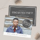 Une annonce de photo de remise de diplômes ou une invitation à une fête tendance en style de tableau avec une photo orientée paysage sur le devant avec un tampon de style tableau gris charbon affichant "Promotion de 20XX" dans un lettrage rustique en détresse. Le nom du diplômé et de l'école sont affichés sous votre portrait de fin d'études en lettrage gris sur une bande blanche. Ajoutez les détails de votre fête au verso en blanc sur un fond de tableau. Pour utiliser comme une simple carte d'annonce, cliquez sur "effacer le côté" au verso de la carte pour supprimer tous les éléments.